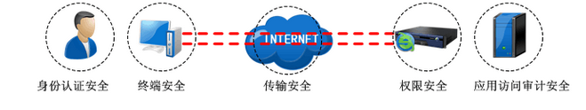 SANGFOR SSL VPN身份认证安全、终端访问安全、数据传输安全、权限划分安全、应用访问审计安全五大安全体系,由头至尾保证整个SSL VPN接入访问的安全性。